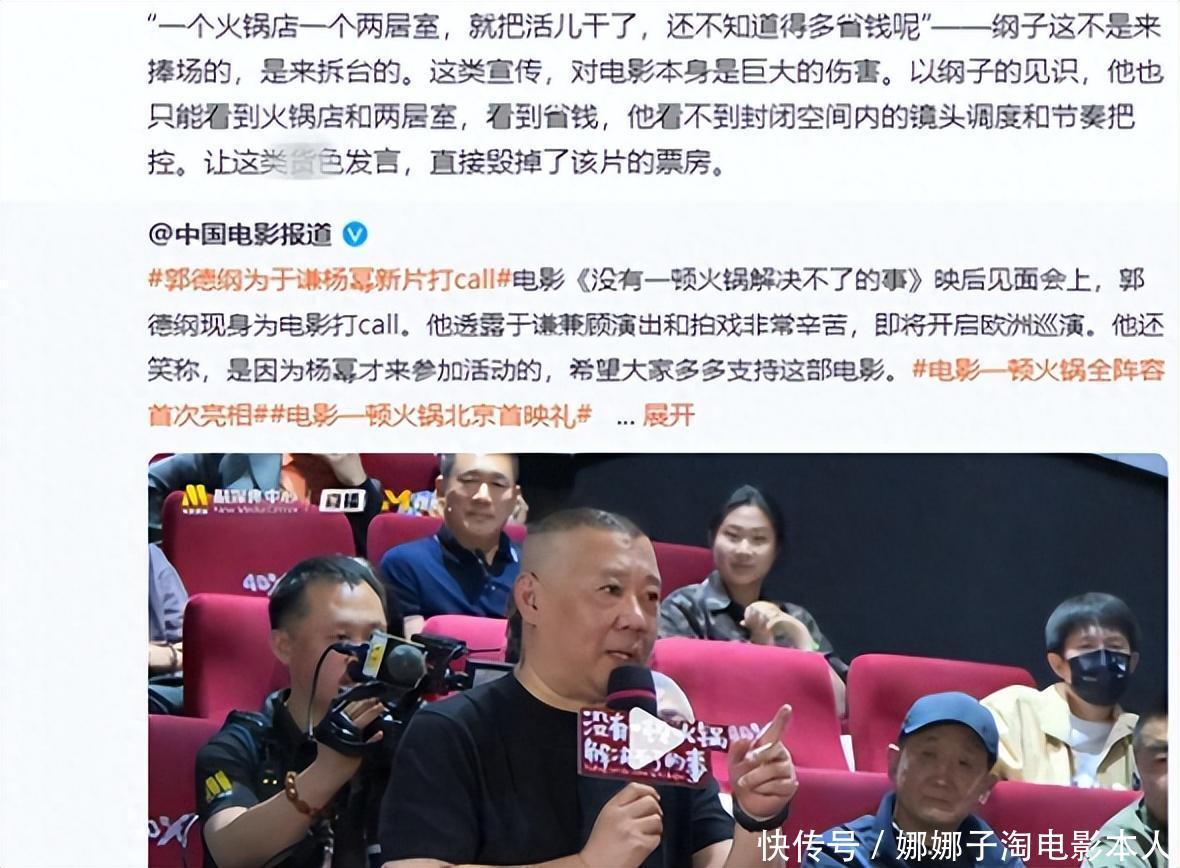 但与此造成显著对比的,是郭德纲在首映会上一句话却拆了于谦的台。