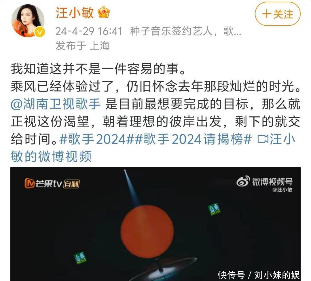 真理的是,汪小敏自荐的视频等于她在《浪姐4》的初舞台,其时唱的是粤语版的《嘉宾》,她选择这个视频尽头灵巧,既抒发了《浪姐》初舞台是真唱,也有点与芒果攀干系的嗅觉。