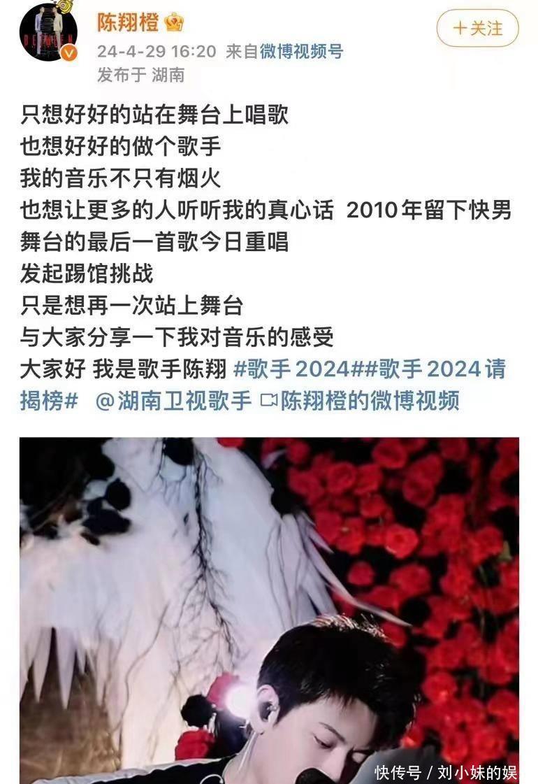 固然陈翔在之后的几年每每时拒抗声屈,但口碑早依然垮塌,如今敢自荐踢馆《歌手2024》,着实是勇气可嘉,对我方的唱功和口碑着实够自信。