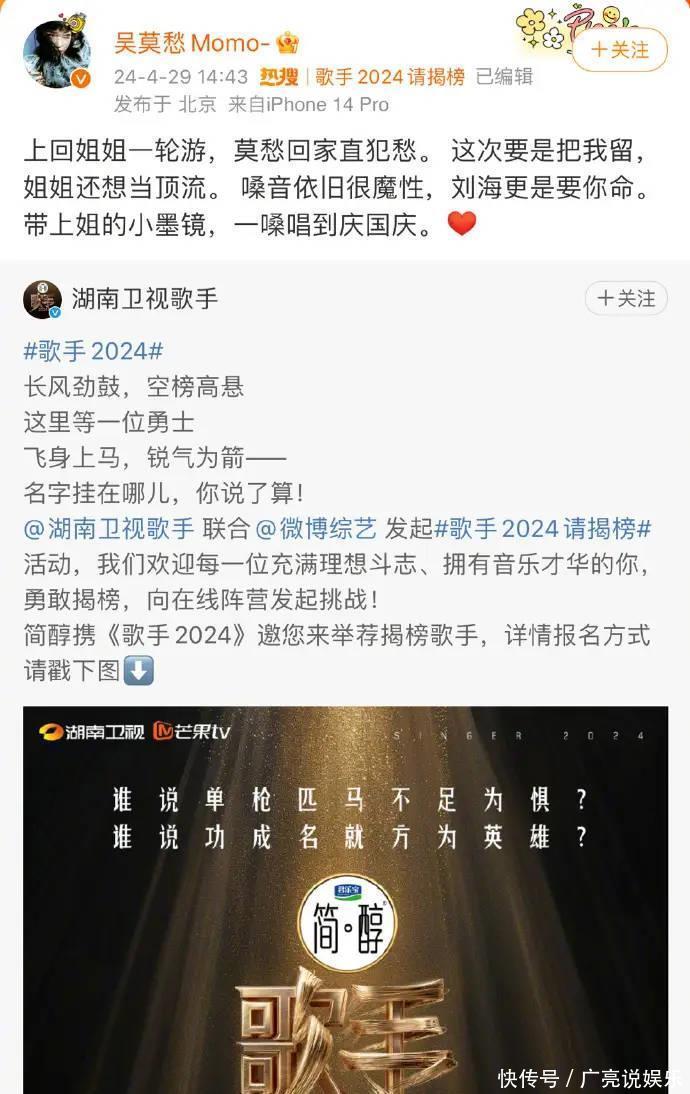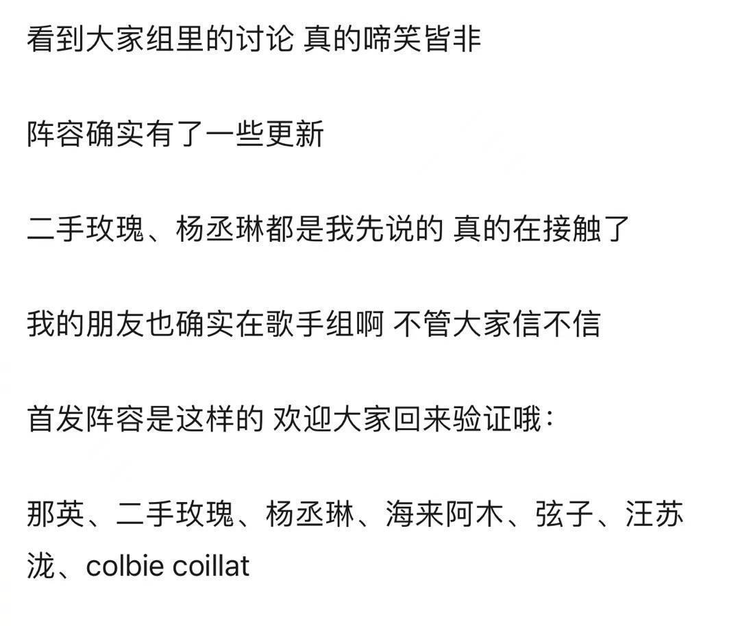 只不外除了这几位外,剩下的声势是引来了不少吐槽,弦子天然是老歌手,但畴昔在《浪姐》舞台齐莫得太多惊艳证明,而二手玫瑰天然很火,但作品似乎跟《歌手》舞台的调性不太相宜。而海拉阿木更是只可算是个集中歌手,这些年有些全网爆红的歌曲,却也堕入过抄袭风云。