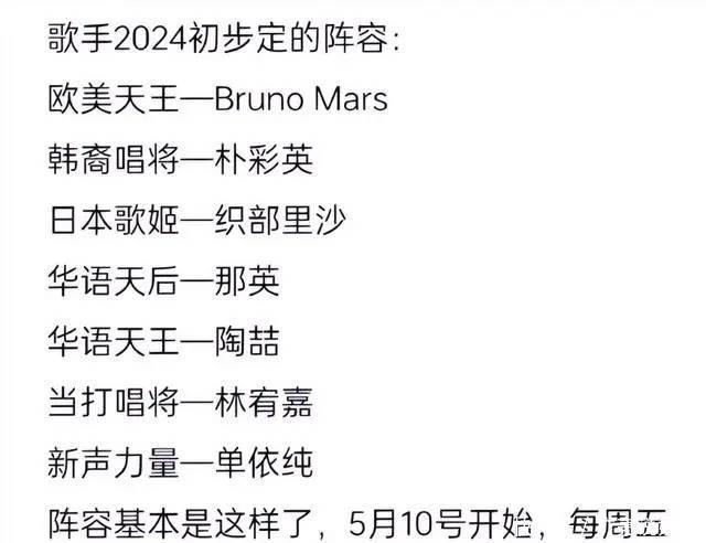 最近跟着《歌手》录制日历的左近,网上对于节目嘉宾实质的音问亦然越来越多,而是一变再变2024年亚博炸金花,一启动传的陶喆、织部里沙、林宥嘉等东谈主将会登上节目,随后这个名单更是平直遭到了单依纯被东谈主的露面辟谣,默示我方根底没上网传的节目。