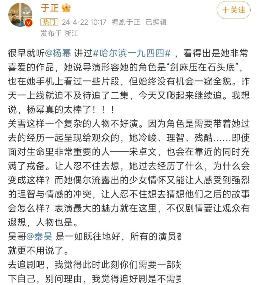 尤其是该剧的女主角杨幂,一直以来,杨幂即是备受争议的明星,不管是在脚色采选上,照旧在演技方面,完竣受外界的质疑和商榷,而这一次,在《哈尔滨一九四四》的播出之后,杨幂再次凭借我方的出色发达眩惑了无数不雅众的眼神,也让她的“话题”女王体质得到了实锤。